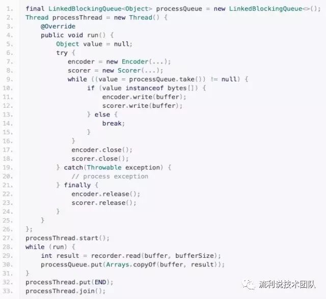 1. 在另一线程处理 pcm 数据,以避免来不及读取 AudioRecorder 导致数据丢失。