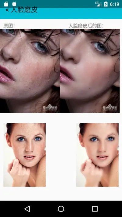 RxImageData.bitmap(bitmap).addFilter(new BeautySkinFilter()).into(image1);来看看在 Android 上的最终效果: