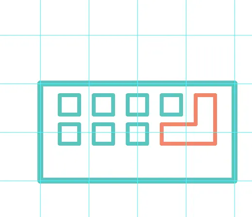 在真正开始作图之前,把思路理清楚,要做哪种图形,动画效果是怎样的。我的思路是做一个动态描边的键盘,我把它分成5个部分,①键盘的矩形外轮廓 ②小方块键盘按键 ③回车键 ④空格键(把回车键和空格键单独绘制,是希望制作一点与众不同的效果)⑤ 键盘线