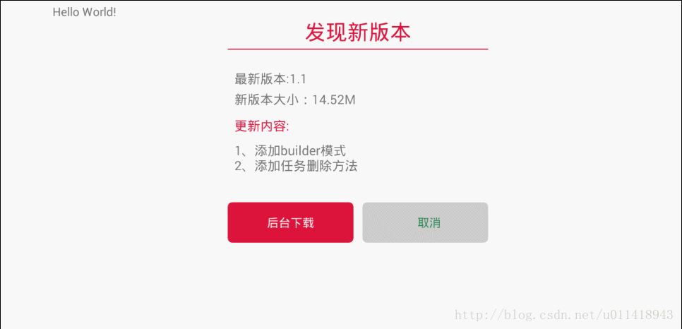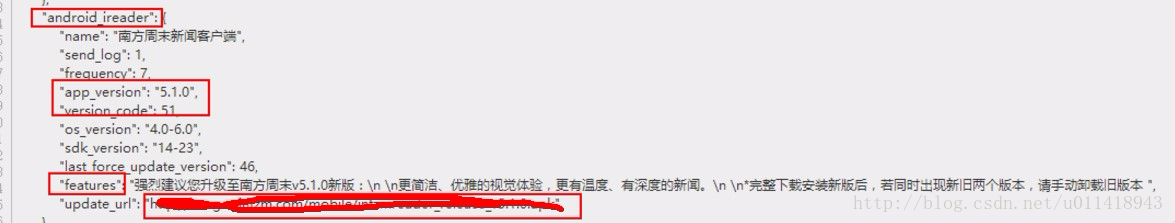 我们把解析出来的 versioncode 大于本地的,就可以更新,然后把上面的数据放到view去;比如我的: