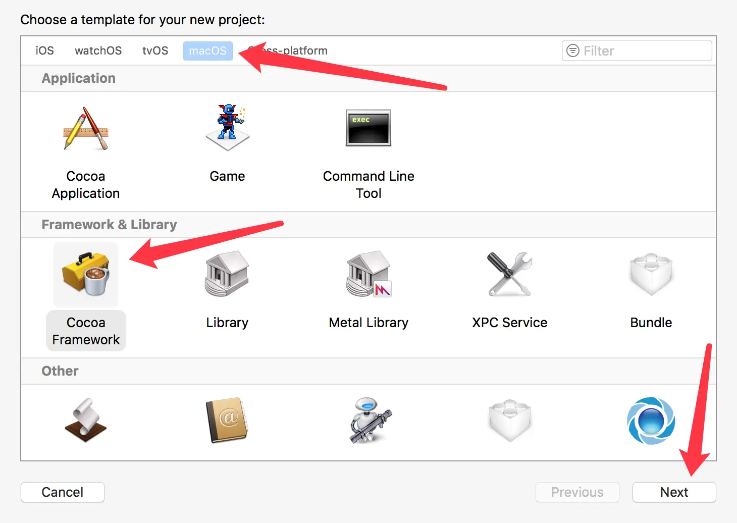 使用 Xcode 创建 macOS 的 Cocoa Framework.