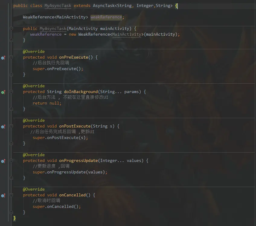 7.不要手动调用onPreExecute(),doInBackground(Params... params),onProgressUpdate(Progress... values),onPostExecute(Result result)这几个方法。