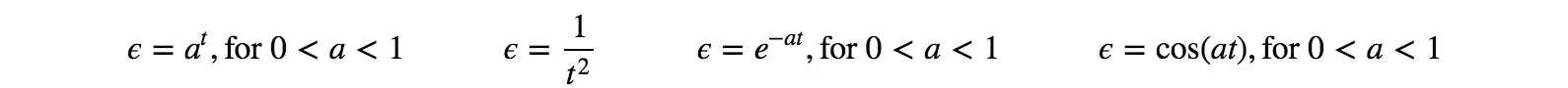 但实际上这种做法还是有问题的,问题是即使我们已经学习完毕了,已经知道了最优解,当我们选择一个动作时,它还是会继续采取随机的动作。有许多方法可以克服这个,比较有名称之为mouse learns: 没循环一次就减少epsilon的值,这样随着学习的进行,随机越来越不容易触发,从而减少随机对系统的影响,常用的减少方法有以下几种,大家可以根据情况选用