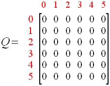 首先将Q初始化一个全为0的矩阵,Q是我们目标矩阵,我们希望能够把这个矩阵填满