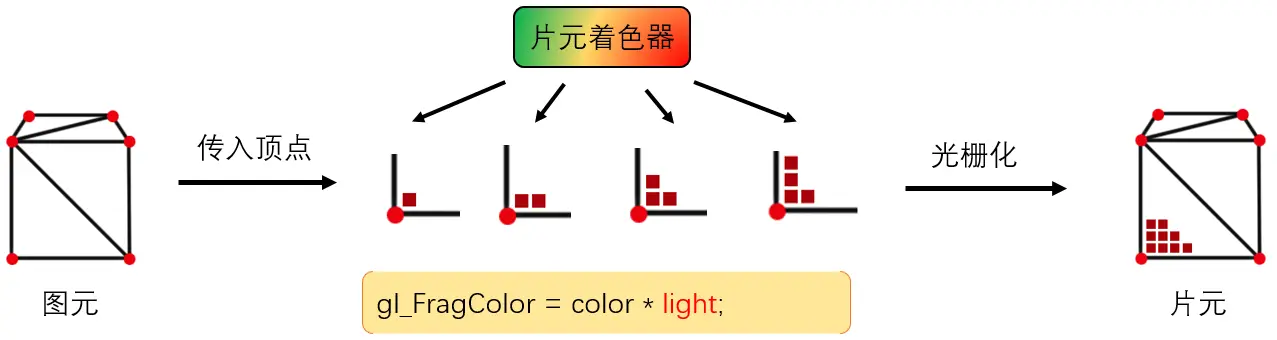 在图元生成完毕之后,我们需要给模型“上色”,而完成这部分工作的,则是运行在GPU的“片元着色器”来完成。