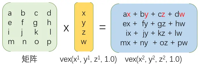 矩阵则以修饰符uniform传递给顶点着色器。