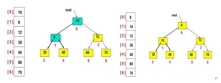 的元素给替换掉了而其余的还是按照根节点小于左右节点