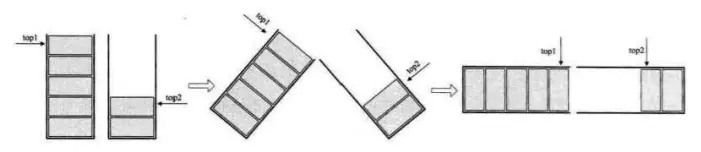top1 和 top2 是栈 1 和栈 2 的栈顶指针,只要二者的值不相等,两个栈就可以进行入栈操作。当 top1 等于 -1 时,栈 1 为空;当 top2等于 n 时,栈 2 为空。当 top2 - top1 = 1 时,栈就满了。