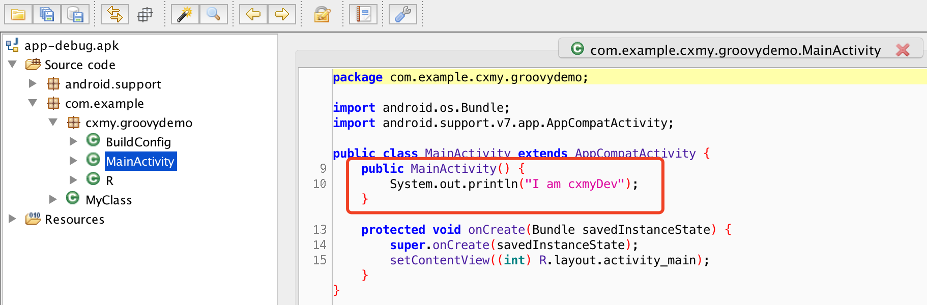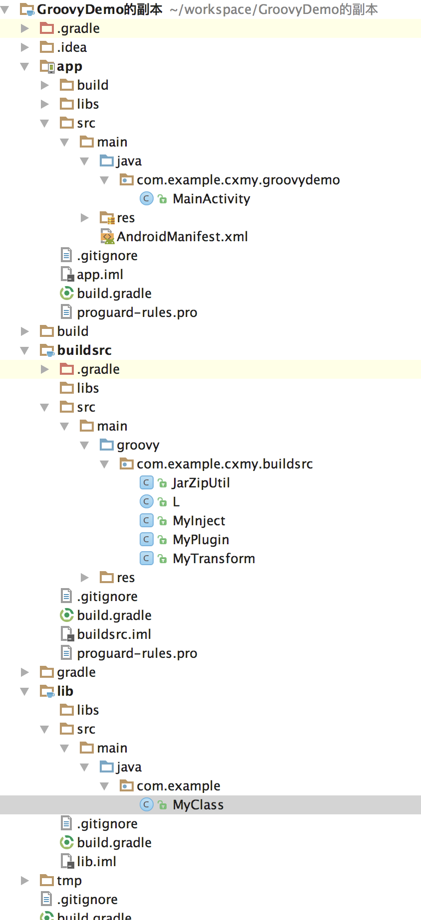 既然关键技术点已经介绍过了,那么就以一个简单的例子,试着编写一个 Gradle Plugin ,在其中修改其内的 class 字节码,最简单的,在构造方法中添加一行代码。
