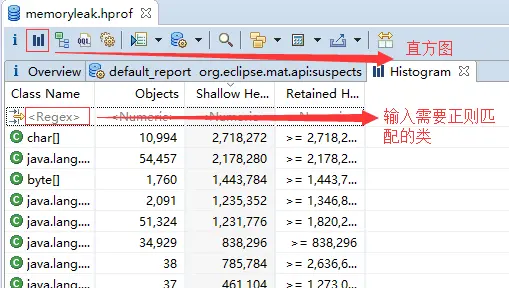 在Class Name下面输入需要匹配的类名,根据类来查看它的实例的引用,进而分析是否存在内存泄露。
