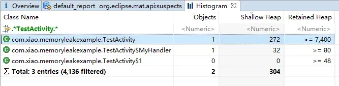 04-25 10:20:46.793 D/LeakCanary: | [0] = com.xiao.memoryleakexample.TestActivity@316091520 (0x12d72c80)