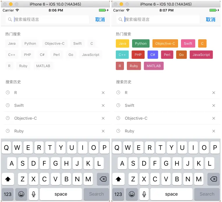 15、PYSearch:一款综合(QQ 音乐、微信、美团、优酷、虎牙直播等多款 App)风格的搜索控制器,感谢推荐人:iphone5solo