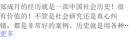 郑成月的经历就是一部中国社会历史!很有价值的!不管是社会研究还是真心纠错,都是非常好的案例。历史就是用各种个人经历写成的,那样就很有实在感。作家们没有素材?都在书写歌功颂德之文?想要把自己的作品流传后世,这就是最好的素材