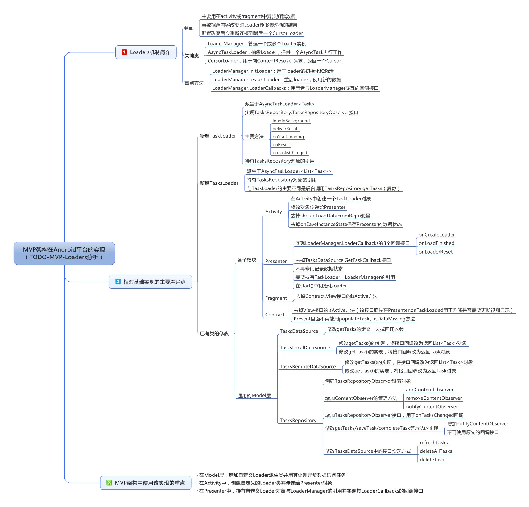 做个总结,上述使用异步Loader机制来实现MVP架构模式的方案,简单来说,重点有3方面:
