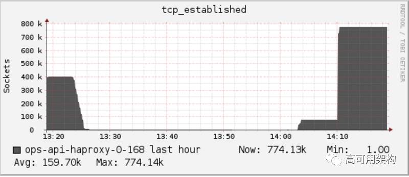 我们确信,如果减少生产环境的 HAProxy 的数量(约 30 个,这意味着每秒 30 * 300〜9k 的连接),我们将会达到机器 TCP 连接限制,而不是 CPU。