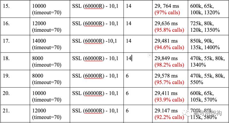 16k 的 SSL 连接也不错。 请注意,在我们的负载测试过程中,必须从头开始,因为我们采用了一个新的客户端,它给了我们比 ab 更好的结果。 所以不得不再来一遍。