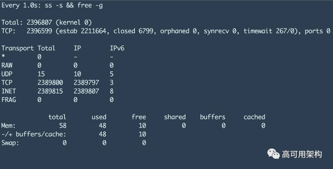 基本上,HAProxy 进程已经耗尽内存。因此,我们决定增加机器内存,并将其转移到 nbproc = 3 的 16 核 64GB 的机器,经过调整,我们终于可以达到 240 万长连。
