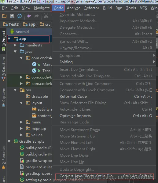 }那上面的代码如果用kotlin实现是什么样子呢。尽管现在我们还不能写出Kotlin代码,但是在安装插件后AS中提供了自动转换Kotlin代码的功能