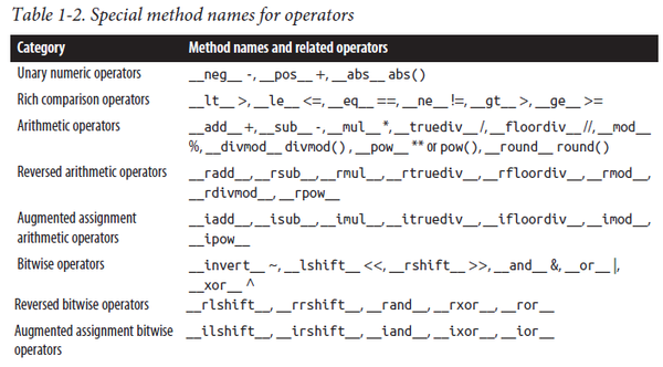 这两个例子个人觉得都算是比较优雅的。其中最关键的一点是,Python 中的特殊函数形式都是 __xxx__ ,想要一个对象能够“做一件很多类都能做的事”,只需要实现对应的特殊函数就行了。(后面还会说明,Python 中的一些特性,如切片,多维数组,也都是特殊函数的语法糖)