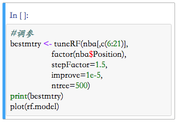 在我做的过程当中,我只注重调整两个影响力最大的参数,就是ntree和ntry,ntree就是指数的数目T,mtry就是指随机抽取的样本子集的大小m。