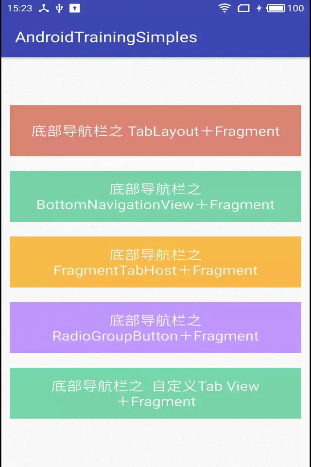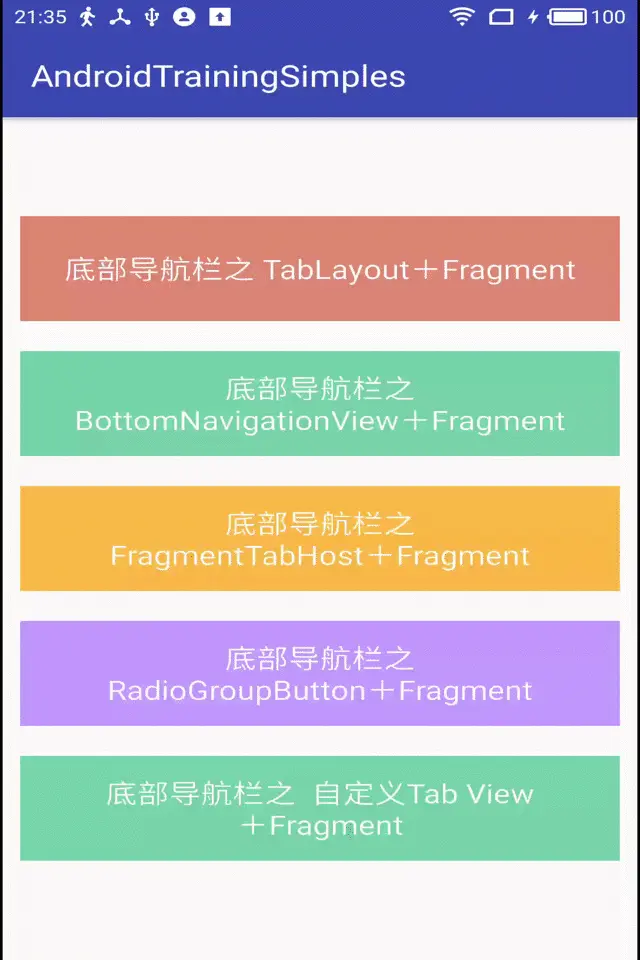 总结:自定义Tab 相比于其他几种方案还是显得有些麻烦,但是可以高度定制,喜欢折腾的可以用自定义View 试试。