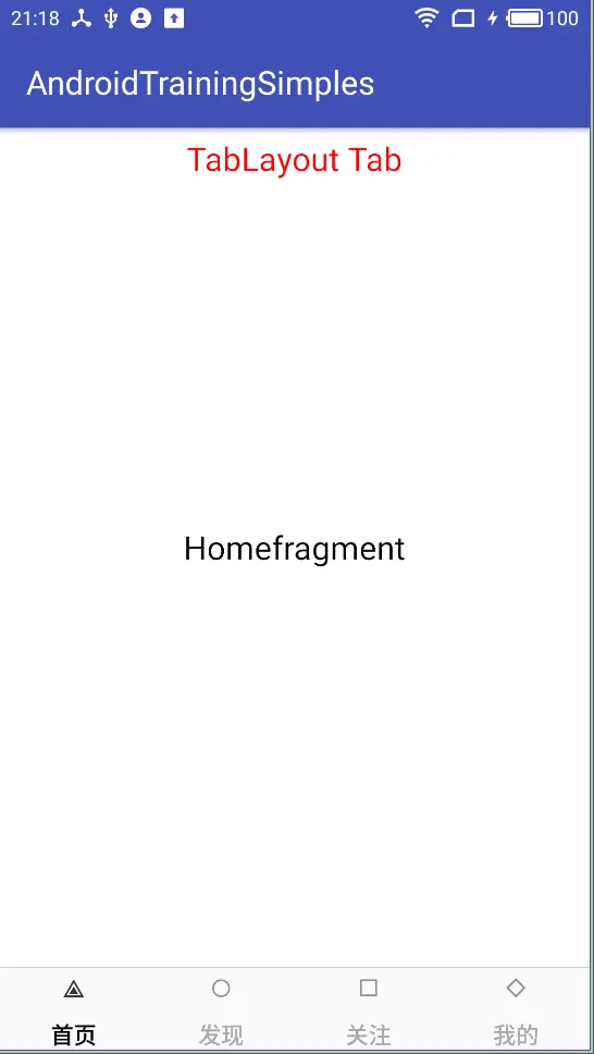 要实现这样一个底部导航栏,大家最容易想到的当然就是TabLayout,Tab 切换嘛,TabLayout 就是专门干这个事的,不过TabLayout 默认是带有Indicator的,我们是不需要的,因此需要把它去掉,看一下布局文件: