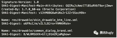 它记录了APK中所有原始文件的数据摘要的Base64编码,而数据摘要算法就是SHA1。 CERT.SF文件内容如下所示: