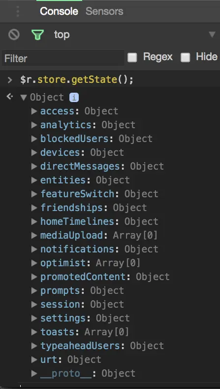 $r.store.getState();接下来,我们就可以看到Redux数据树,就像图中所示: