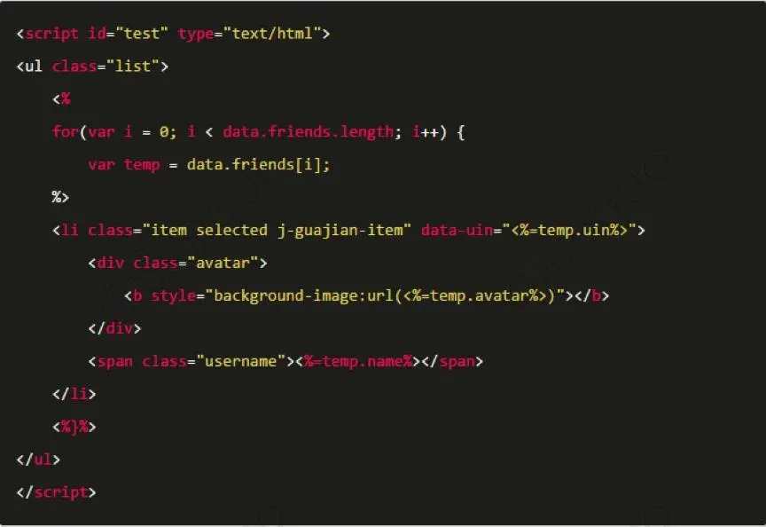 上面的模板应该是前端开发者很熟悉的一种模板语法,通过<%%>