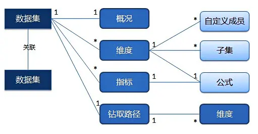我们的产品需要存储元数据(Metadata),用以支持Report、Dashboard以及数据分析,主要的数据模型结果如图所示: