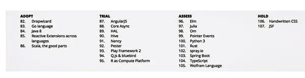 Scala似乎从诞生开始,一直争议很大。早在2014年1月ThoughtWorks的Tech Radar中,就讲Scala列入了Adopt圈中,但却在其中特别标注了“the good parts”: