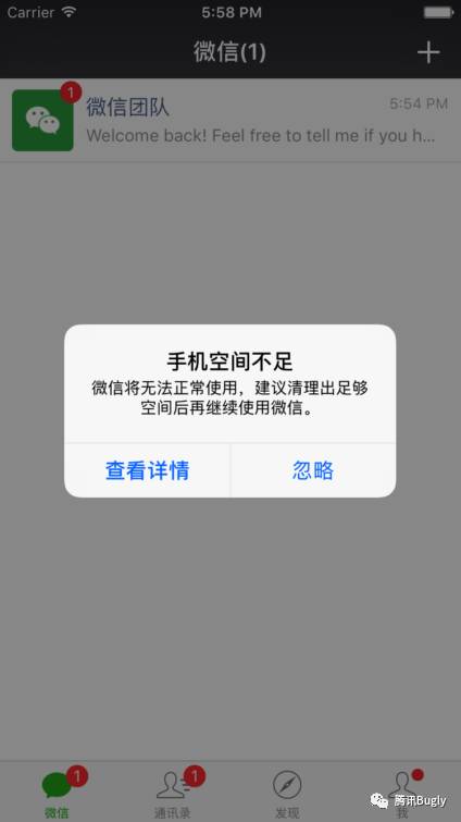 对于微信之外的空间占用,例如相册、视频、其他App的空间占用,微信本身是做不了什么事情的,我们可以提示用户进行空间清理: