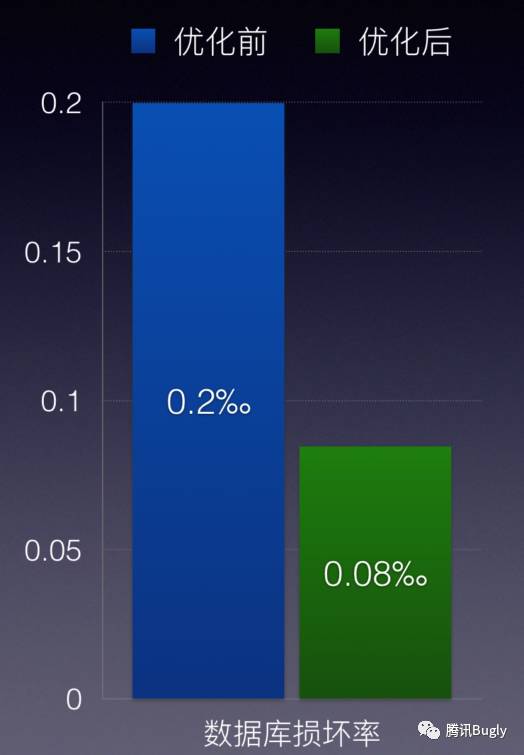 众所周知,微信在后台服务器不保存聊天记录,微信在移动客户端所有的聊天记录都存储在一个 SQLite 数据库中,一旦这个数据库损坏,将会丢失用户多年的聊天记录。而我们监控到现网的损坏率是0.02%,也就是每 1w 个用户就有 2 个会遇到数据库损坏。考虑到微信这么庞大的用户基数,这个损坏率就很严重了。更严重的是我们用的官方修复算法,修复成功率只有 30%。损坏率高,修复率低,这两个问题都需要我们着手解决。
