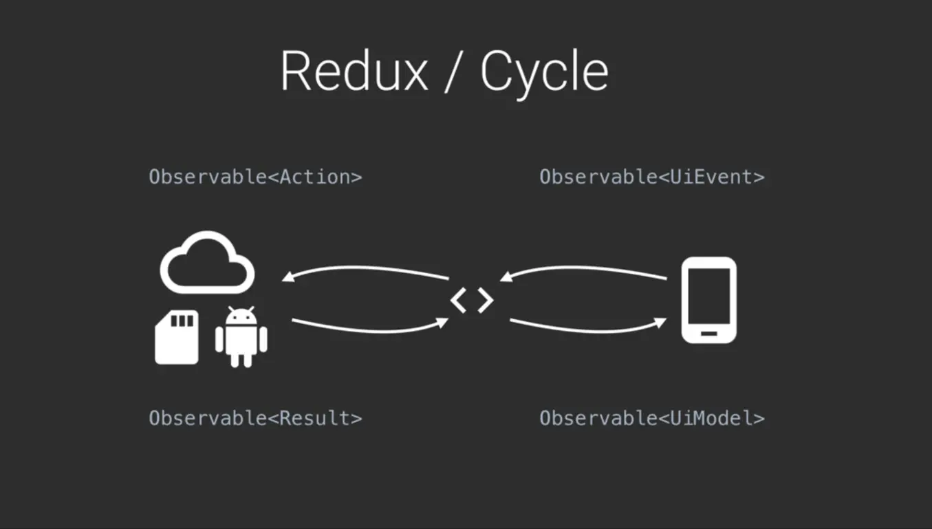 前阵子不久,Jake Wharton 在Devoxx 的演讲: The State of Managing State with RxJava 中提出了一个类似于Redux的 Full Rx 的App 结构。 如下图: