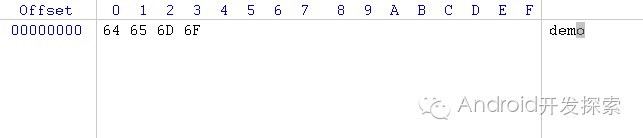 以上代码中,我们使用FileWriter向demo.txt中写入了“demo”这四个字符,我们用十六进制编辑器WinHex查看下demo.txt的内容: