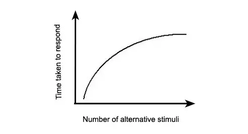 定律内容:一个人面临的选择(n)越多,所需要作出决定的时间(T)就越长。用数学公式表达为反应时间 T=a+b log2(n)。在人机交互中界面中选项越多,意味着用户做出决定的时间越长。例如比起 2 个菜单,每个菜单有 5 项,用户会更快得从有 10 项的 1 个菜单中做出选择。