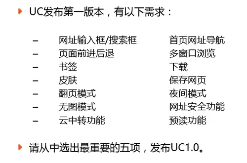 这个原理被称为“如无必要,勿增实体”,即如有两个功能相等的设计,那么选择最简单的。在极客公开课・走进 UC 中 UC 浏览器产品经理苏剑南在”UC 浏览器 For Android 产品设计思考“演讲中也有讲到该原理的应用,”如果 UC 手机浏览器要发布第一个版本 UC 1.0,你会选择哪五个功能?‘’