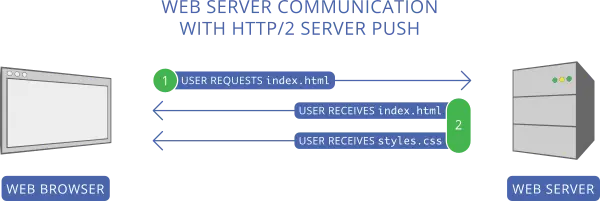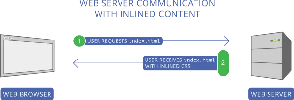 相比等待服务器发送 index.html,然后等待浏览器请求并接收 styles.css,用户只需等待服务器的响应,就可在初次请求同时使用 index.html 和 styles.css。