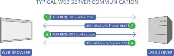 对网络服务器的初始请求通常是一个 HTML 文档。在这种情况下,服务器会用所请求的 HTML 资源进行响应。接着浏览器开始对 HTML 进行解析,过程中识别其他资源的引用,例如样式表、脚本和图片。紧接着,浏览器对这些资源分别发起独立的请求,等待服务器返回。