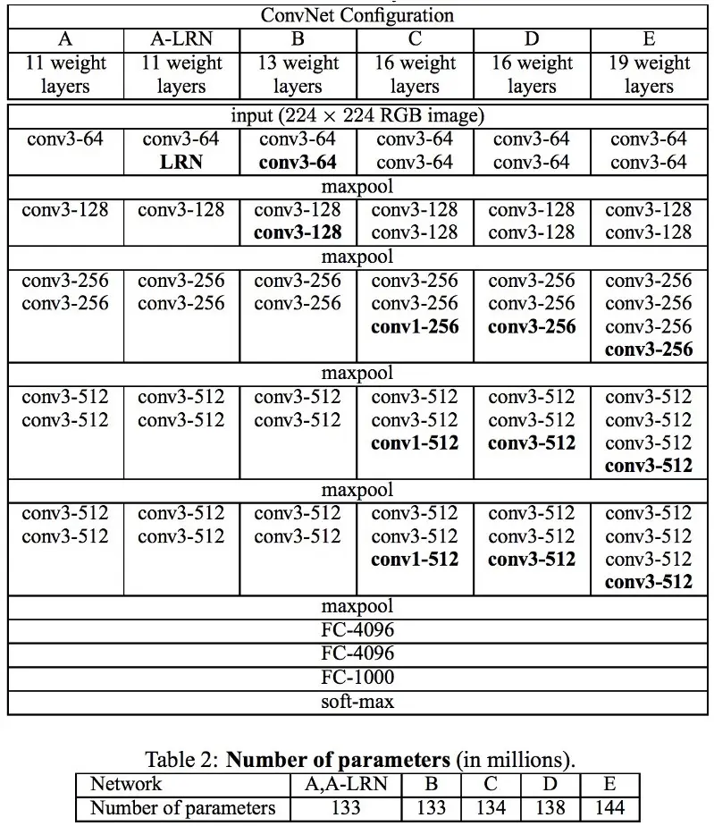 VGG 网络使用多个 3x3 卷积层来表达复杂特征。注意到上图中 VGG-E 网络的3、4、5块(译者注:应该指的是卷积层5~16层),这里多次使用了 3x3 的卷积核以提取更加复杂的特征以及这些特征的组合。这样显然增加了参数的数量和对计算能力的要求。同时训练这些网络也是困难的,必须分成更小的网络,然后再逐层添加上去。这是因为缺乏强大的机制来正则化模型,或者以某种方式限制由于大量参数而提升的搜索空间。