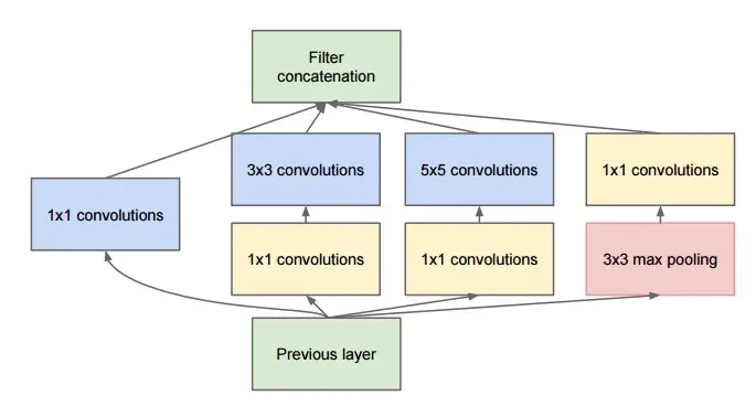 受 NiN 的启发,Inception 的 bottleneck layer 通过减少特征数量从而减少每一层的操作数,也因此加速了模型推理过程。在将数据传送到计算昂贵的卷积模块前,特征的数量已经被减少了 4 倍。这节约了大量的计算成本,并且促进了该架构的成功。