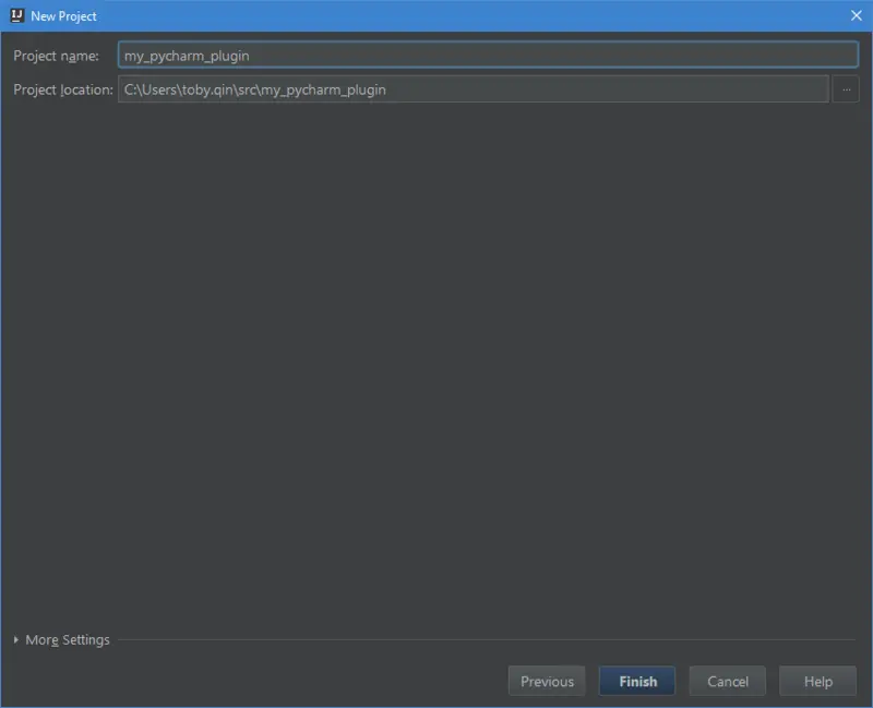 回到 New Project 的界面,点击 Next,输入 Project name 和 Project location,点击完成。