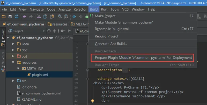如果你的插件是内部小范围使用,并且可能带有敏感信息,那么这样的方式会比较适合你。从主菜单选择 Build > Prepare plugin ‘my_plugin’ For Deployment。