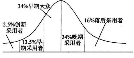 技术的应用往往是一个漫长的过程,从学术上被提出,再到足以产品化落地,并被人们接受,这过程显然不是几年就可以完成的。美国学者E·M罗杰斯曾将这一过程归纳为了著名的创新扩散曲线,而很显然的是,区块链作为一项新兴技术,目前还处于技术曲线早期的爬坡期。