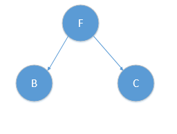 根据算法,此时r=r+1=1,对应y轴,此时对应算法|S|>1,则我们分别递归的在F对应的左子树与右子树按y轴进行分类,得到中位节点分别为B,C点,如图所示:
