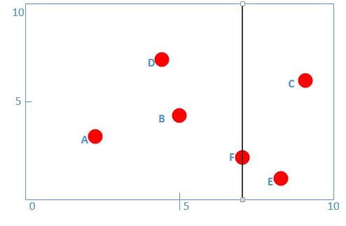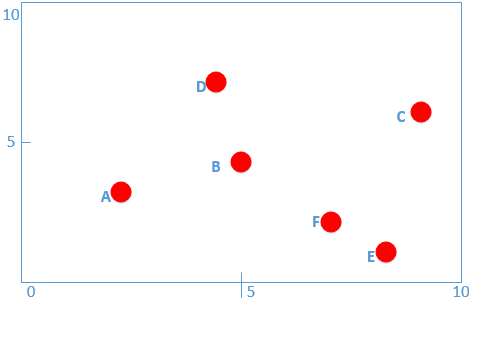 A(2,3)、D(4,7)、B(5,4)、F(7,2)、E(8,1)、C(9,6)