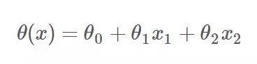 Sigmoid 函数的图像是一个 S 型,预测函数就是将 sigmoid 函数 g(x) 里的自变量 x 替换成了边界函数θ(x),如下: