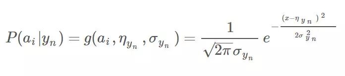 其中,ηyn 和σyn 分别为训练样本 yn 类别中 ai 特征项划分的均值和标准差。