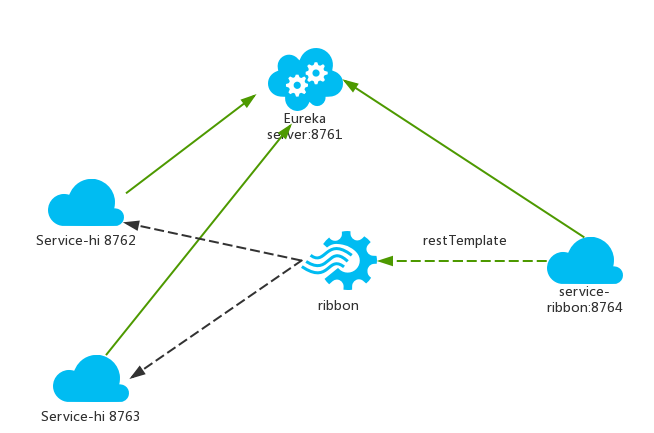 - sercvice-ribbon端口为8764,向服务注册中心注册