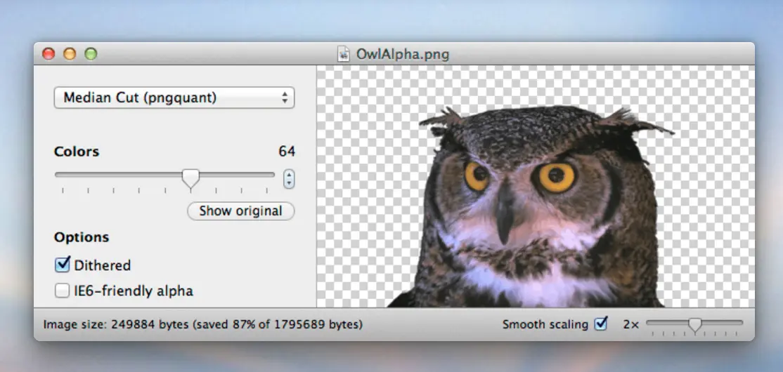 - 可以使用Show original按钮在原始图片和优化后图片进行切换来对比优化有的质量。